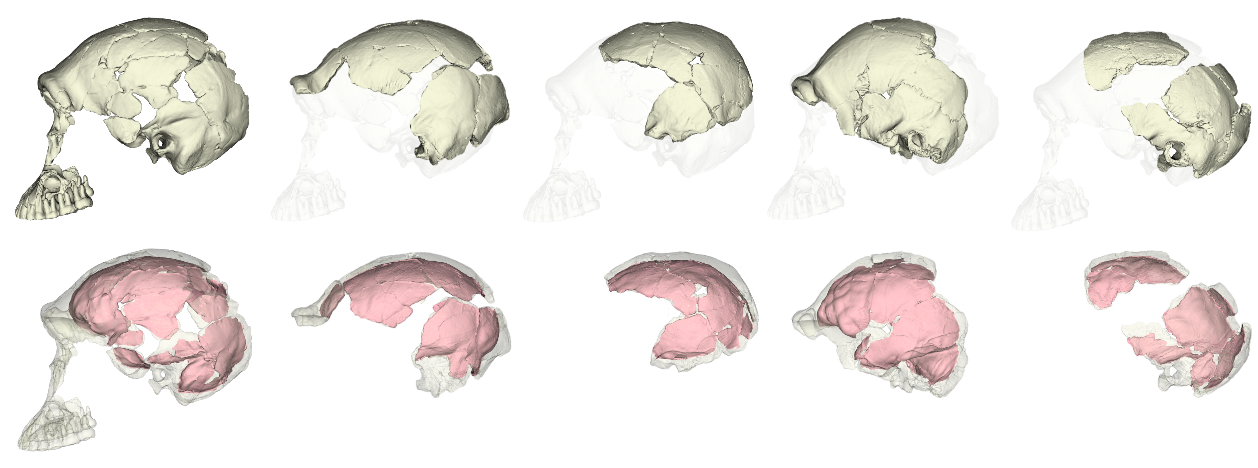 The fossil record provides the only direct evidence (itself rather indirect) of what past brains were like, in the form of endocasts: imprints that the brain makes on the inside of the skull bones during growth. The image I selected for my flash talk (above) shows the endocasts from five fossils of a species called Homo naledi that lived in South Africa around 300,000 years ago. You can see that some are fairly complete (like the one on the left), while others have really prominent impressions created by the outer surface of the brain (like the one second from the right side). All five of these endocasts leave something (or a lot) to be desired. The human fossil record so far provides us with literally hundreds of fossil endocasts at various states of completeness, providing small, blurry windows into brains in the human lineage over the past six million years. Although most are fragmentary, the phantoms of ancient minds, I think they tell a cool story about the human condition, and call for a truly integrative and anthropological approach to studying the brain.